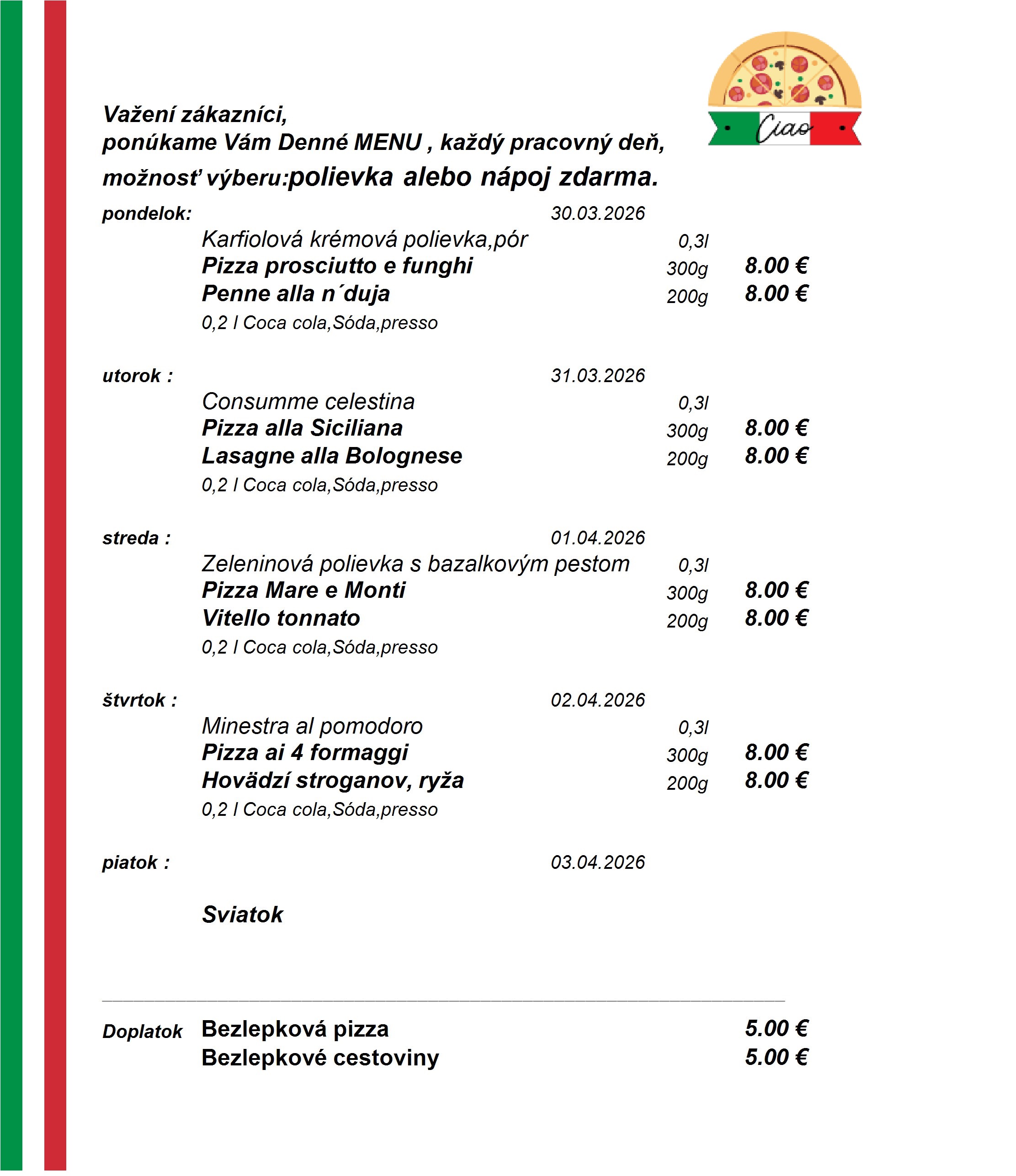 Reštaurácia Pizzeria Ciao